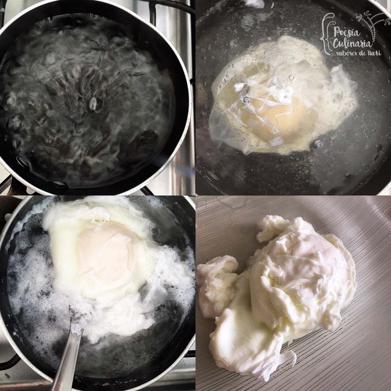 *para escalfar los huevos agua hirviendo y 1 cucharadita de vinagre blanco